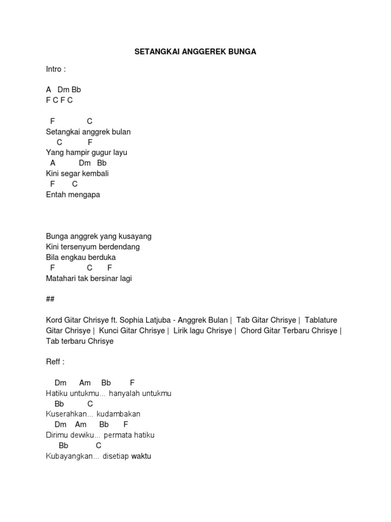 Lyric Chord Bunga Anggrek Setangkai Anggrek Bulan Indonesia Song Pdf Google Drive